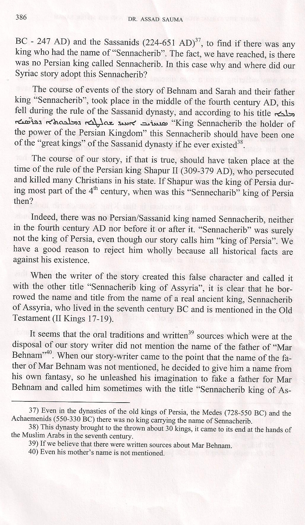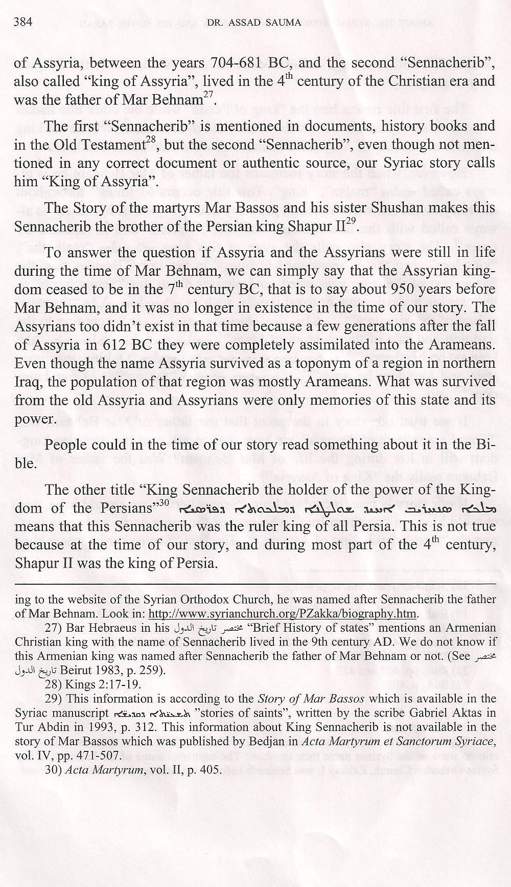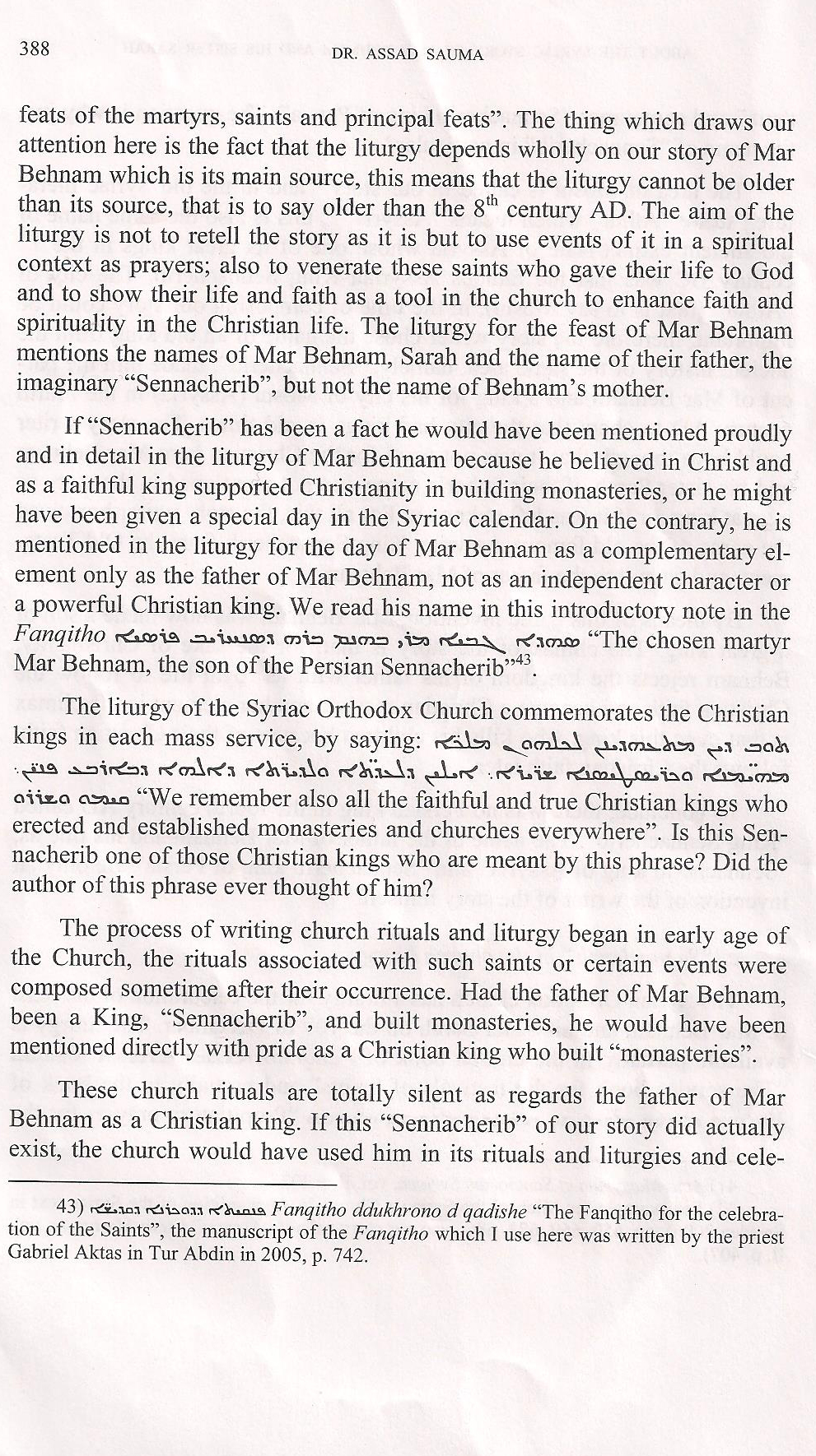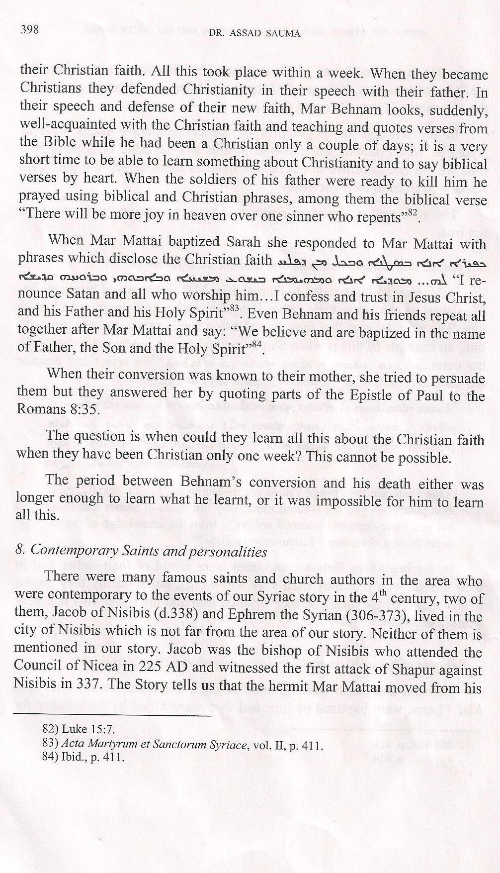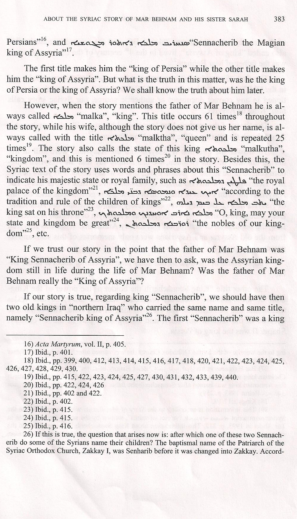"Mar Behnam seems, suddenly, well-acquainted with the Christian