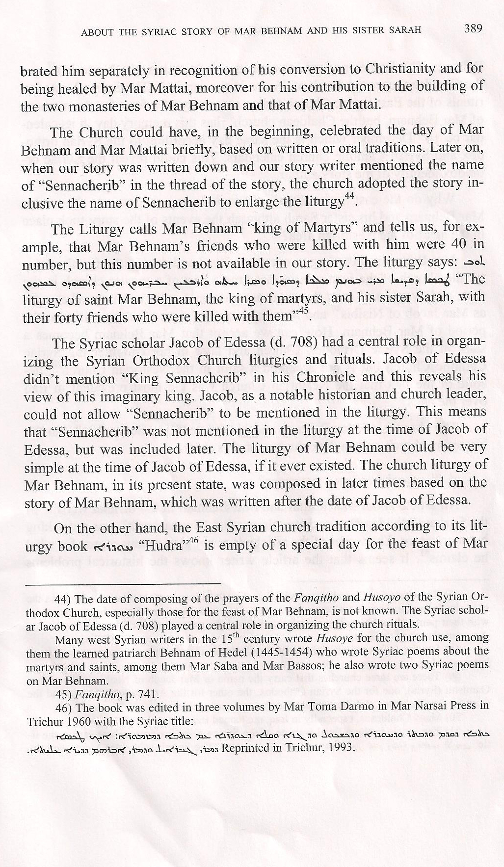of a transcription of the Syriac name