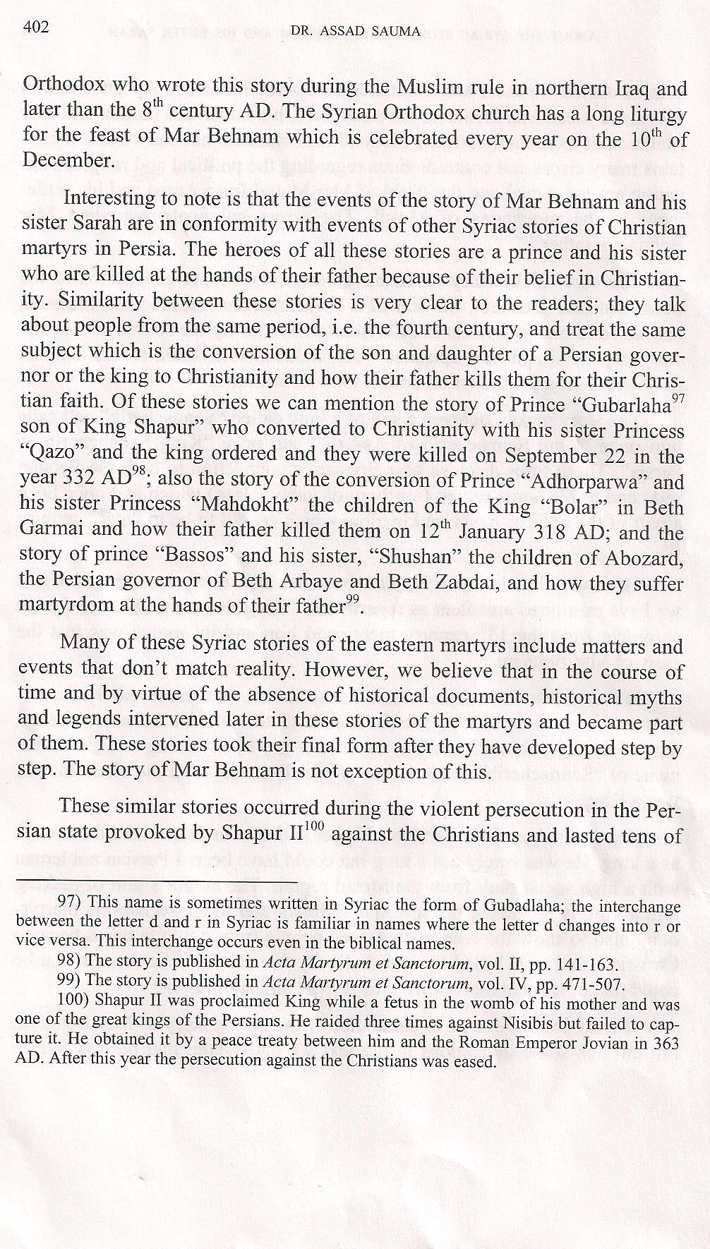 of a misspelling in the Syriac text for the word "Christians" is