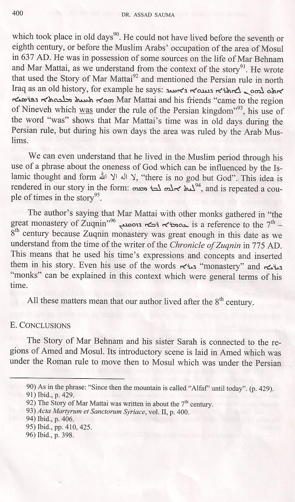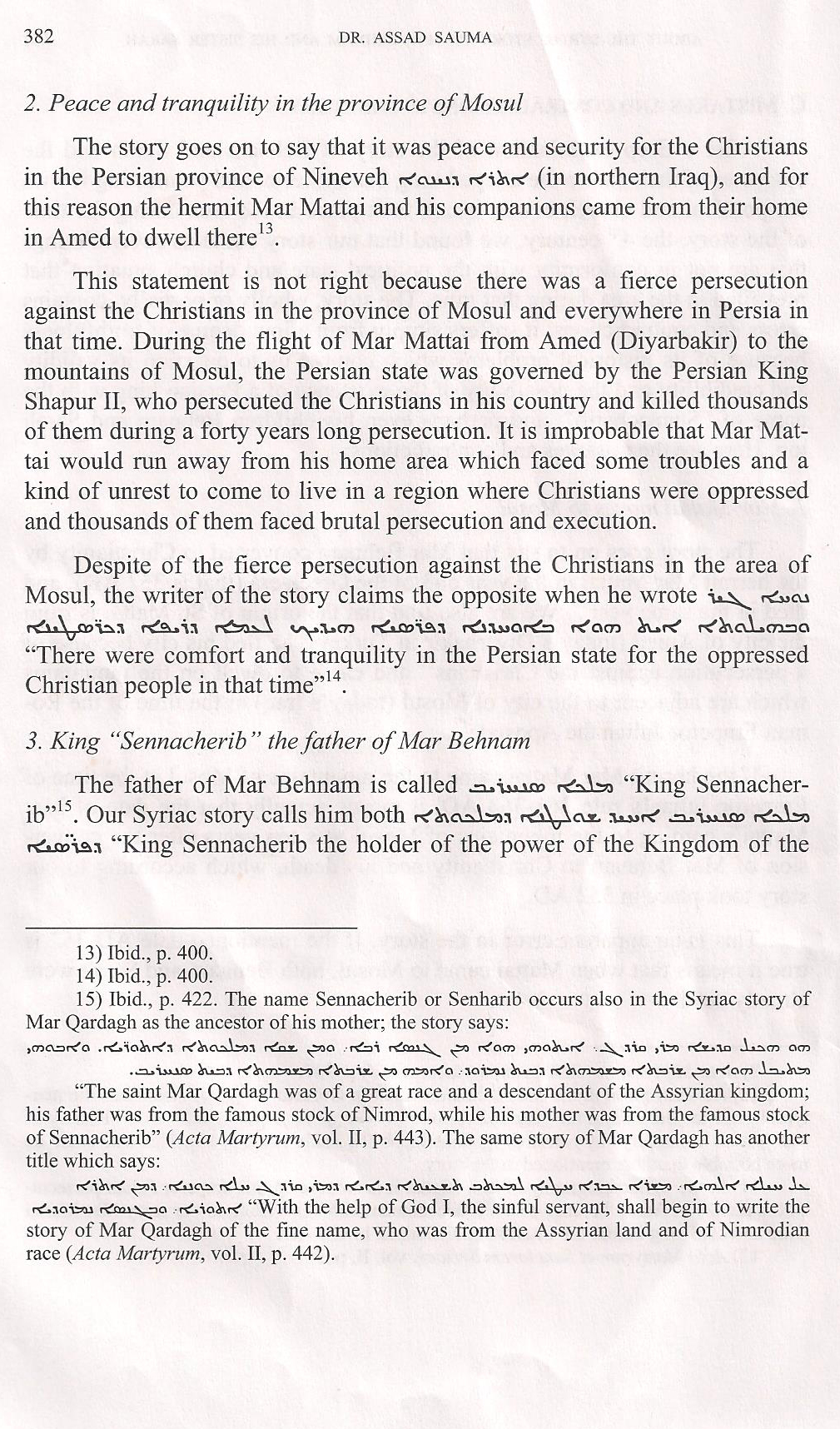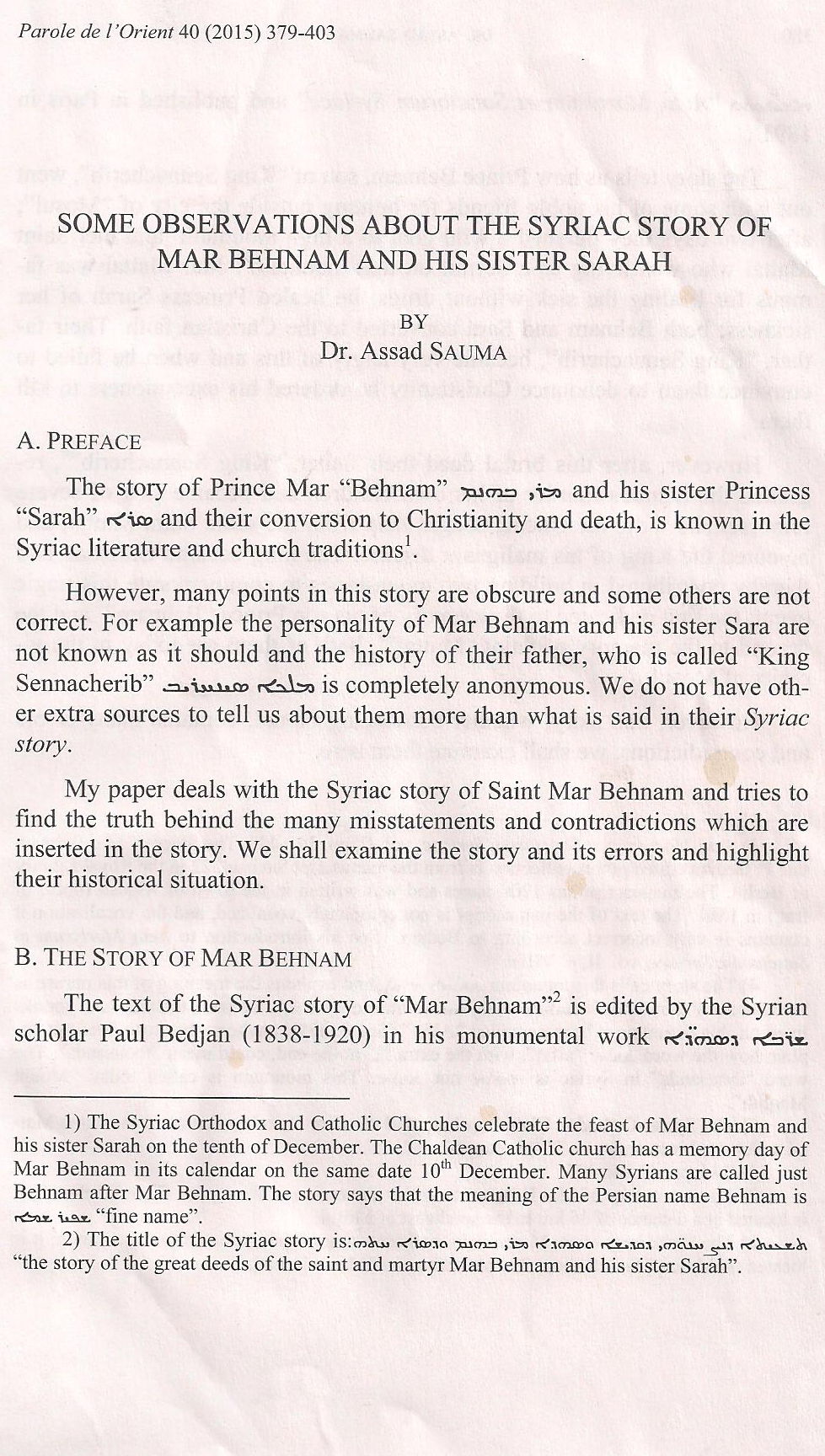 "Mar Behnam seems, suddenly, well-acquainted with the Christian